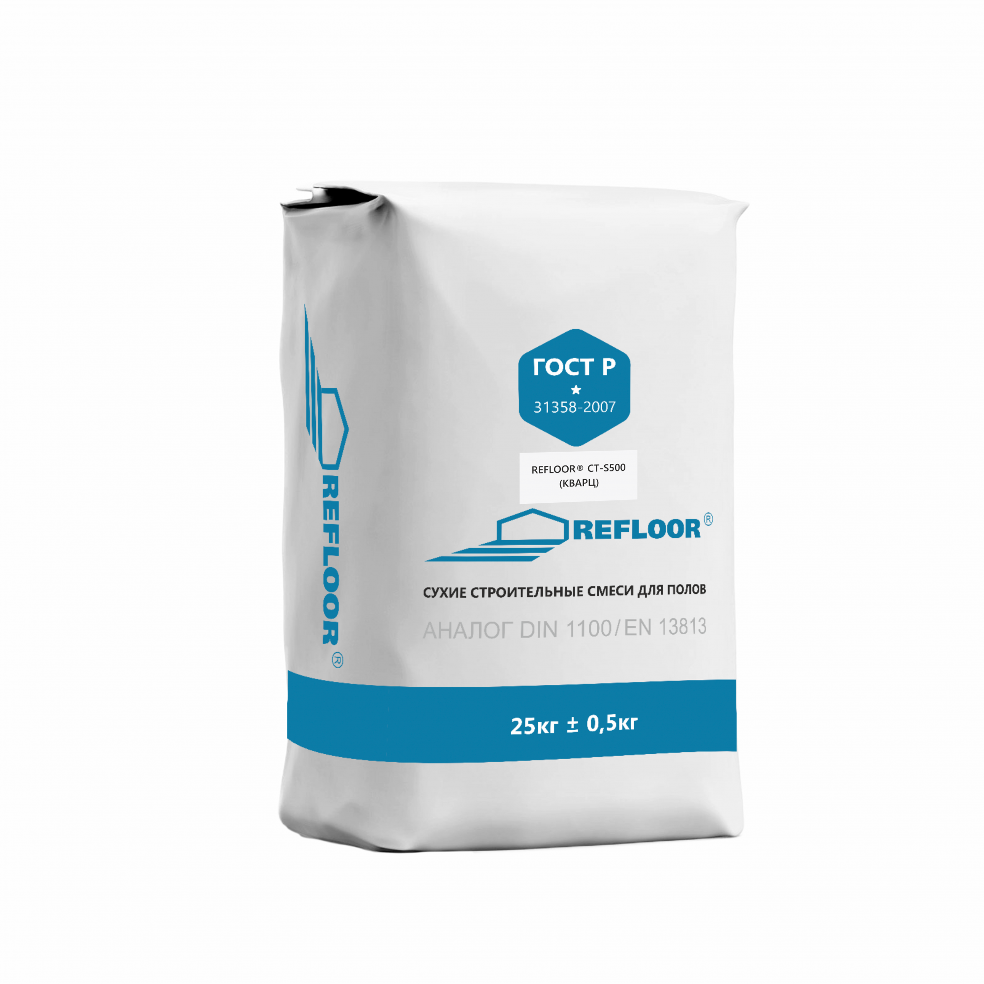 Кварцевый топпинг Refloor® CT-S500 - сухая упрочняющая смесь, состоящая из портландцемента, фракционного кварцевого наполнителя, модифицирующих добавок и пигмента. Поставляется в виде предварительно смешанной сухой смеси для непосредственного использования по принципу «сухой на мокрый». Материал не содержит летучих растворителей, не имеет запаха. Технические характеристики производимого материала соответствуют ГОСТ 31358-2007.